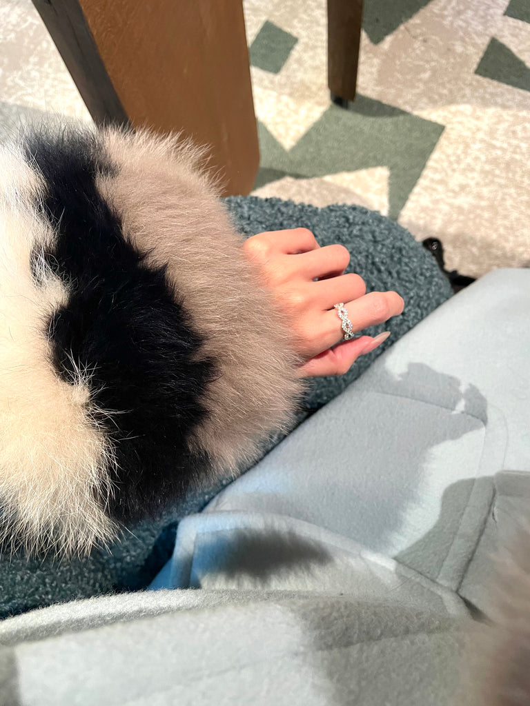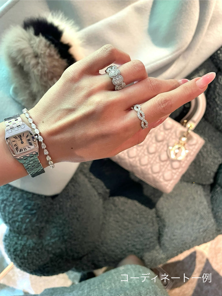 ぐるりと一周に石がセットされておりますので、どこから見てもお手元を輝かせ、お楽しみいただける一品となっております。